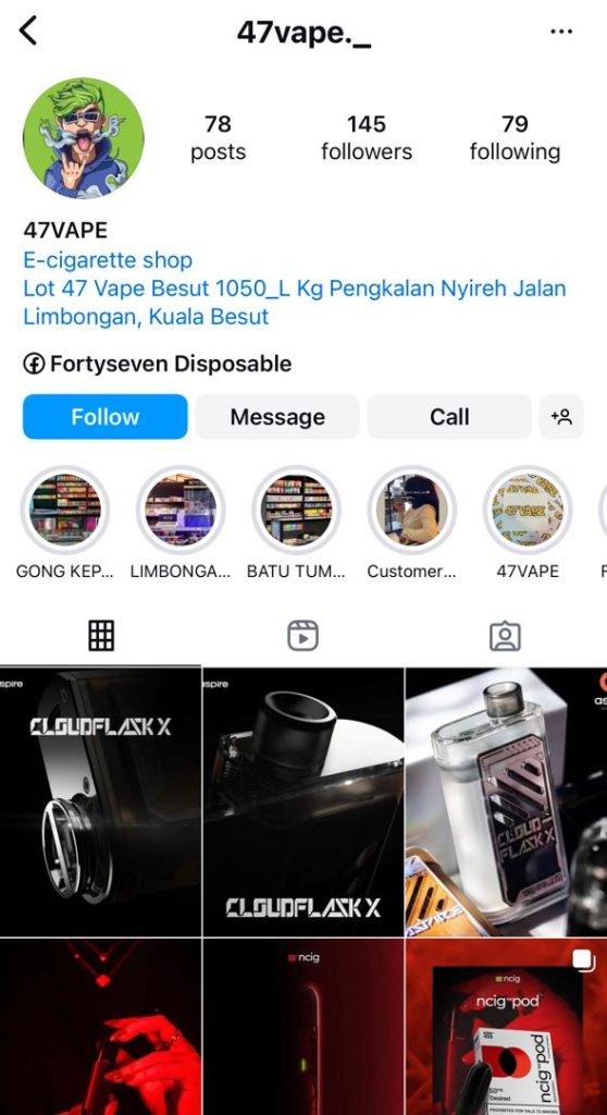 Nama Kedai : https://www.instagram.com/47vape._/?hl=en
