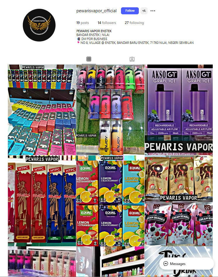 Nama Kedai : https://www.instagram.com/pewarisvapor_official/?hl=en