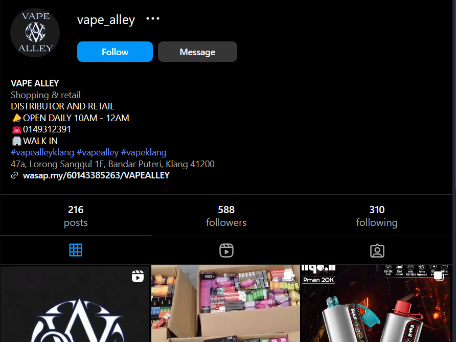 Nama Kedai : VAPE ALLEY (https://www.instagram.com/vape_alley/?hl=en)